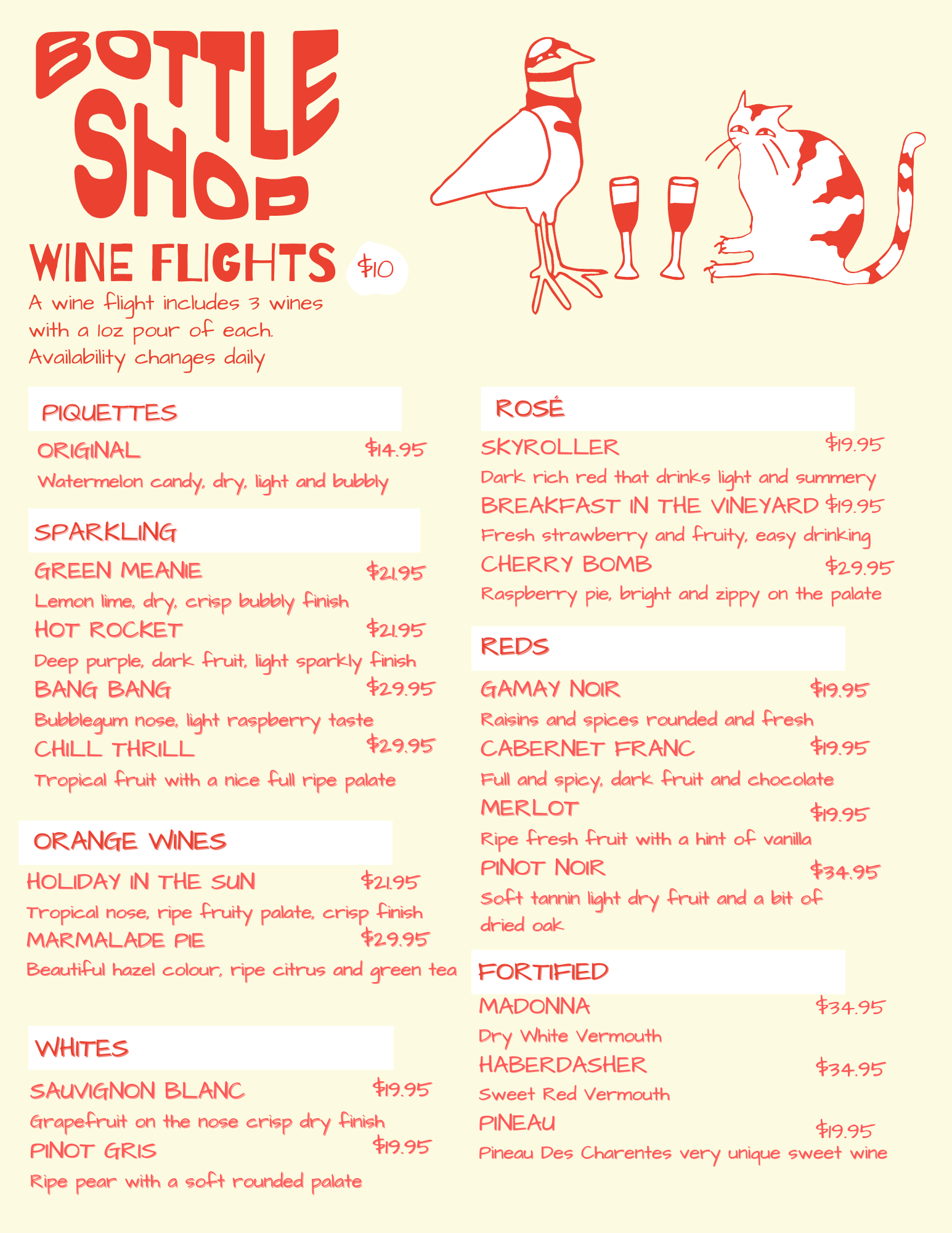 Below are our current menus for Winter 2025. Availability changes daily for open wines.