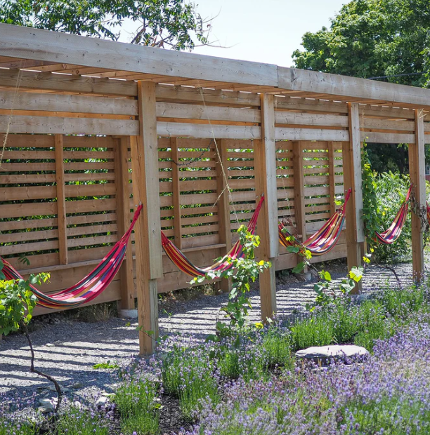 - Relax under a shaded pergola on a hammock while the breeze wafts the scent of lavender over you. Open May-October (weather permitting)