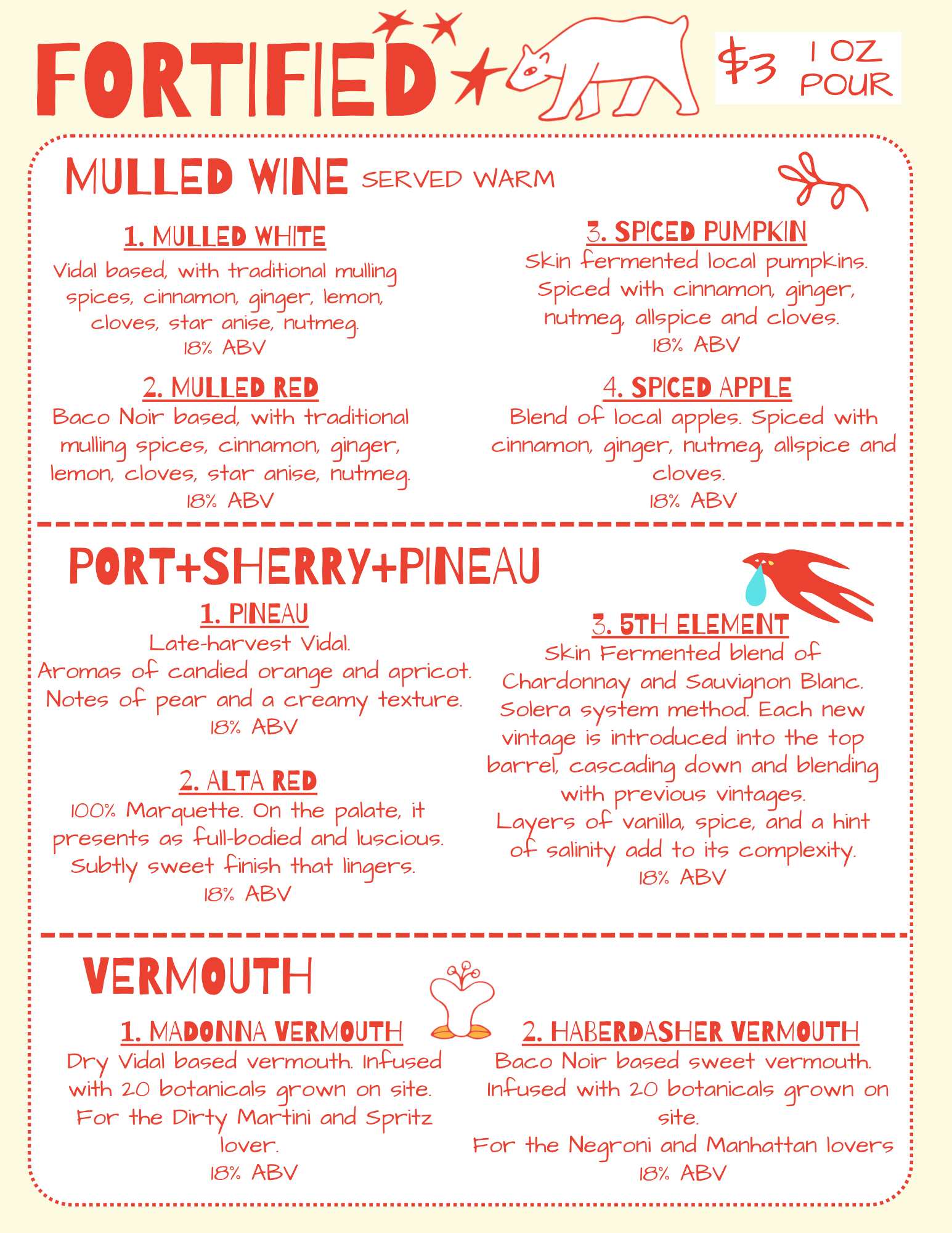 The Cellar Tasting Room is the only space open during this period. No food available in Winter season.